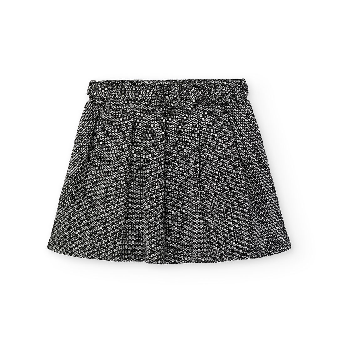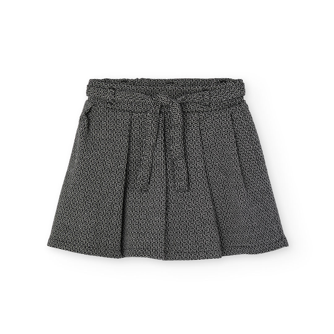 Dívčí sukně s páskem a jemným vzorem. Stylová dívčí sukně s jemným černobílým vzorem, elastickým pasem a ozdobným páskem na zavázání. Vnitřní kraťásky zajišťují komfort a volnost pohybu. Skvělá volba do školy, na návštěvy i běžné nošení. Kousek, který se snadno kombinuje a vždy zaujme.
