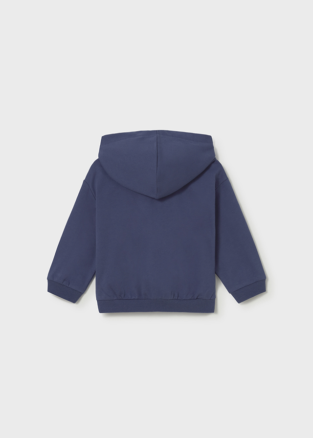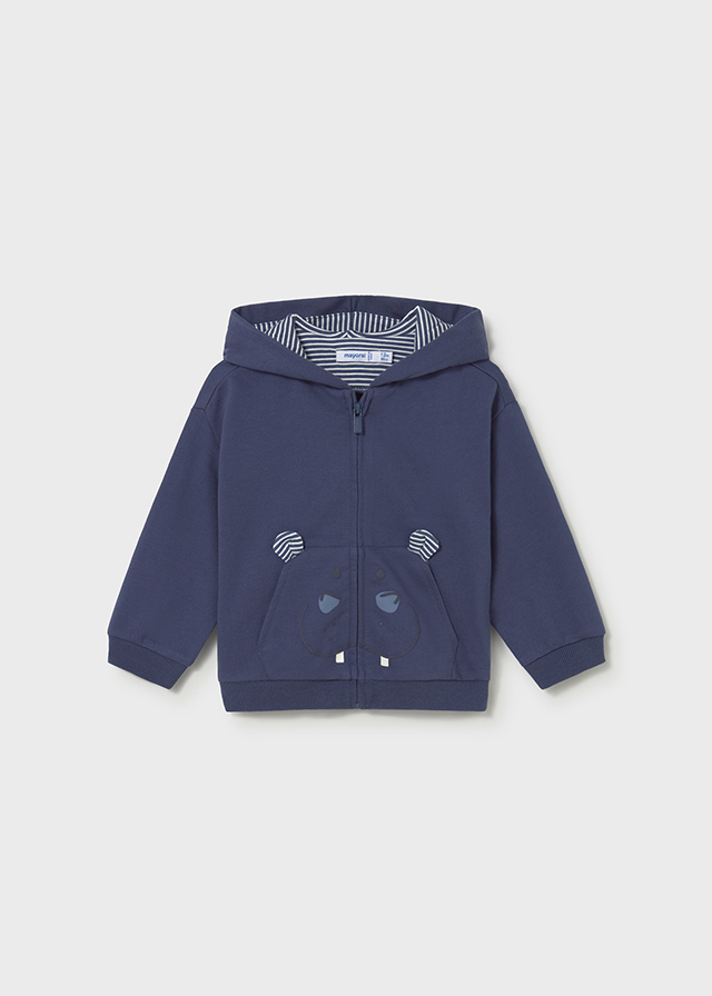 Chlapecká mikina s kapucí a hrošíkem. Modrá chlapecká mikina na zip s kapucí a výrazným motivem hrošíka, ideální na jaro a chladnější letní dny.