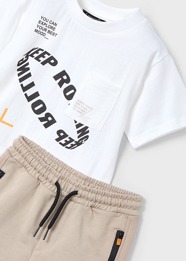 Letní komplet. Kompletní letní souprava s tričkem a kraťasy, ideální pro teplé dny.