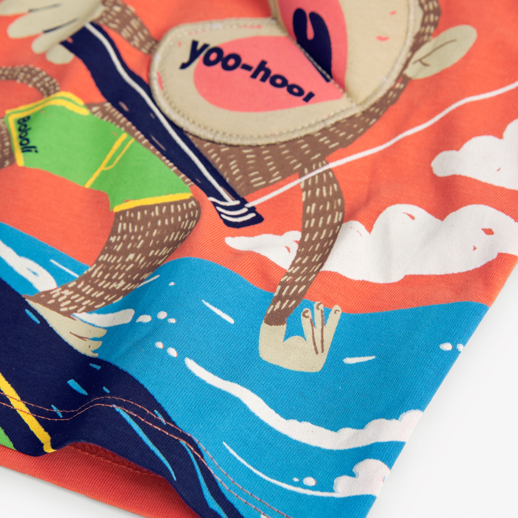 Vtipný potisk opice na surfovacím prkně., Skvělá volba pro letní zábavu.
