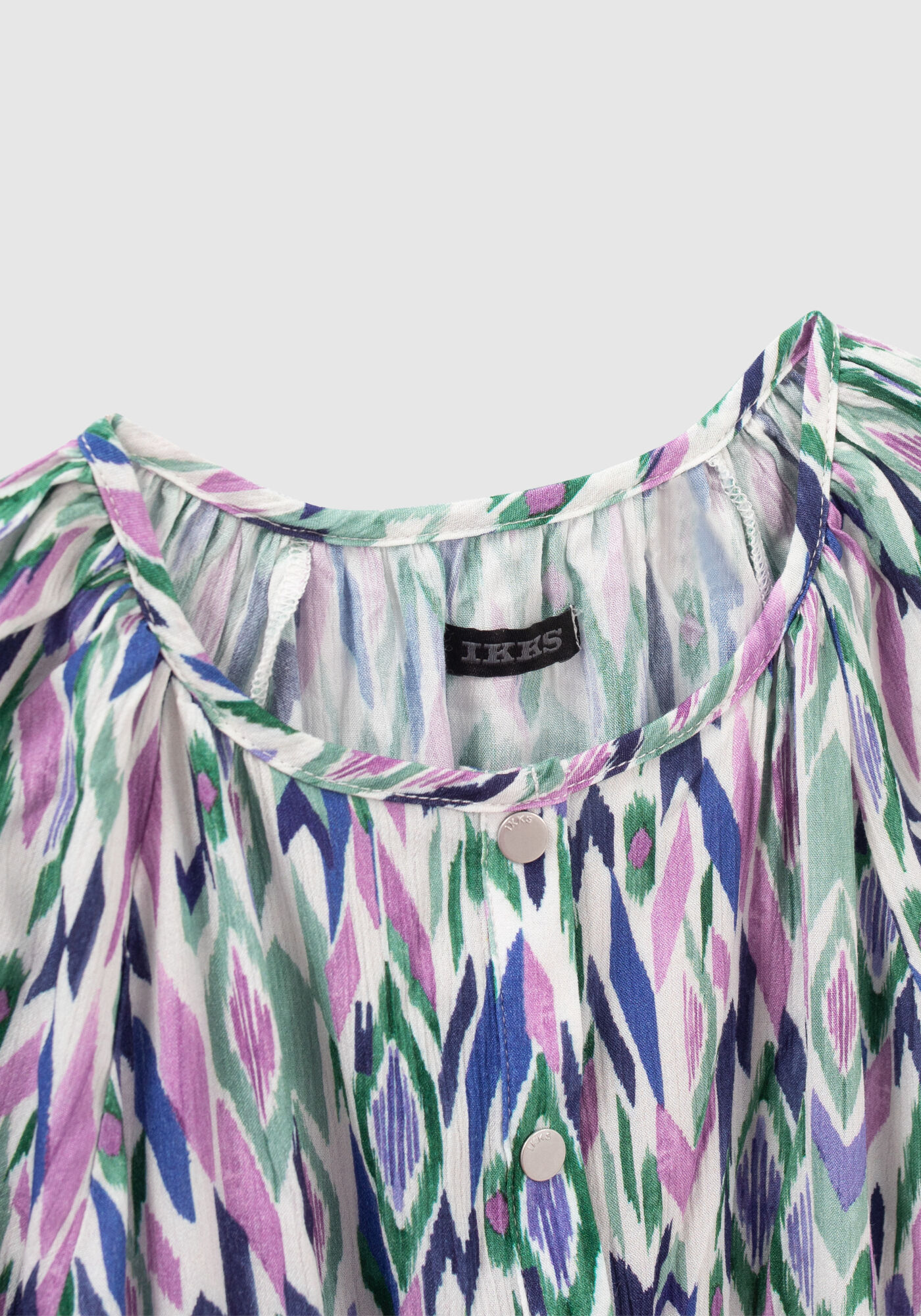 Dívčí barevné šaty s grafickým potiskem - asymetrický lem s volánky IKKS