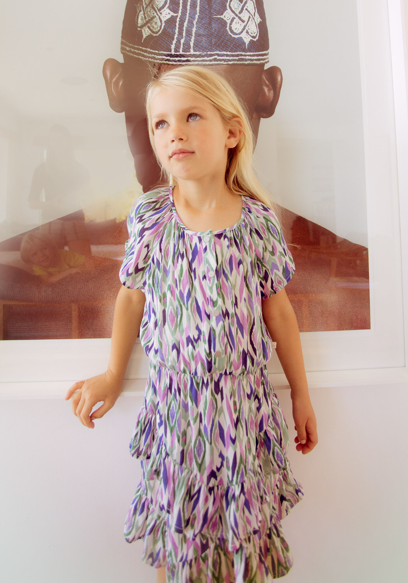 • preview Dívčí barevné šaty s grafickým potiskem - asymetrický lem s volánky IKKS