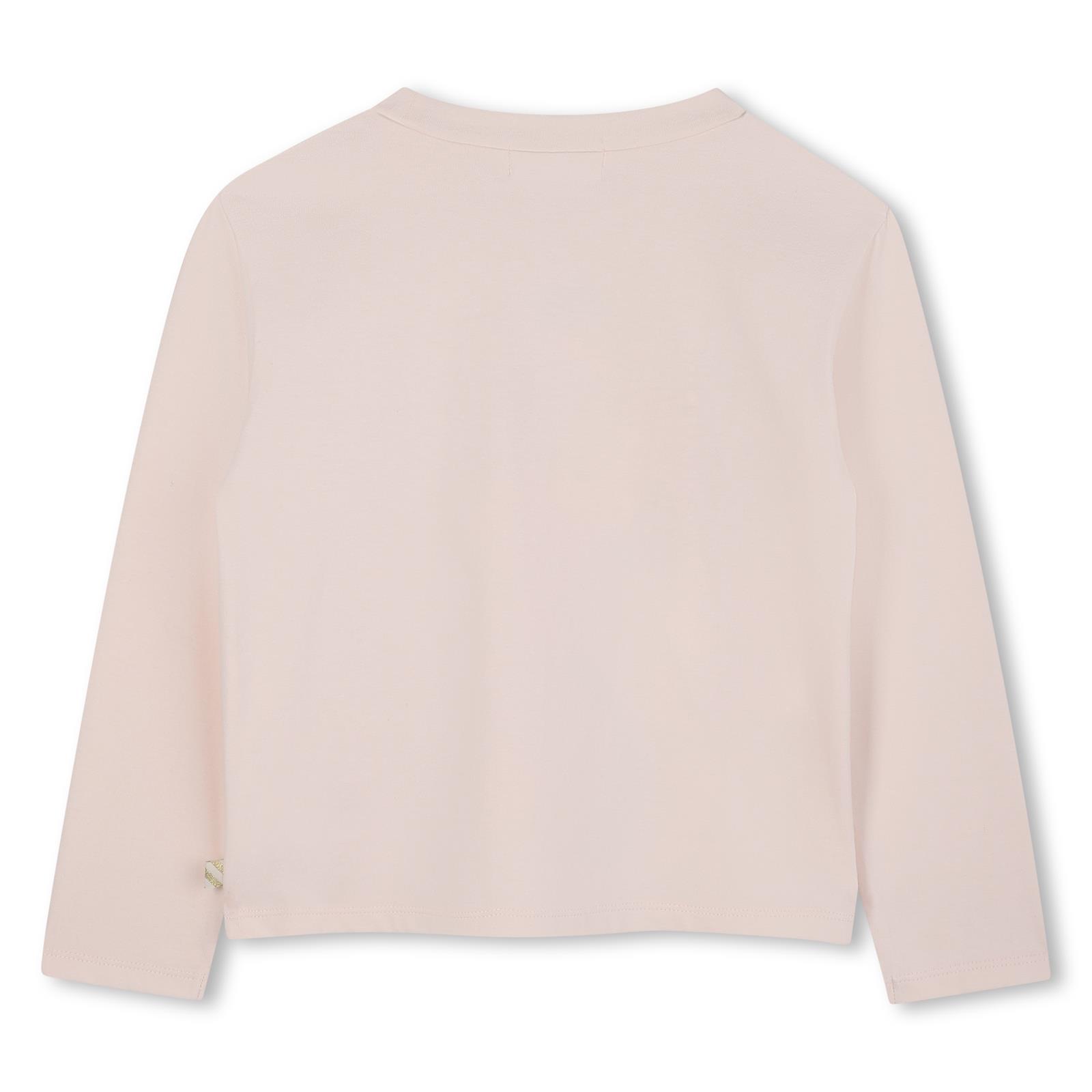 Dívčí tričko Billieblush z bavlny s dlouhým rukávem a potiskem. Stylové dívčí tričko Billieblush je vyrobené ze 100% měkké bavlny, která zajistí maximální pohodlí při nošení. Tričko má kulatý výstřih, dlouhé rukávy a volnější komfortní střih, který je ideální pro každodenní outfit.Přední stranu zdobí originální ilustrace potištěná lesklým inkoustem, která dodává tričku hravý a moderní vzhled. Kvalitní zpracování a ikonický štítek Billieblush podtrhují prémiový charakter tohoto kousku.