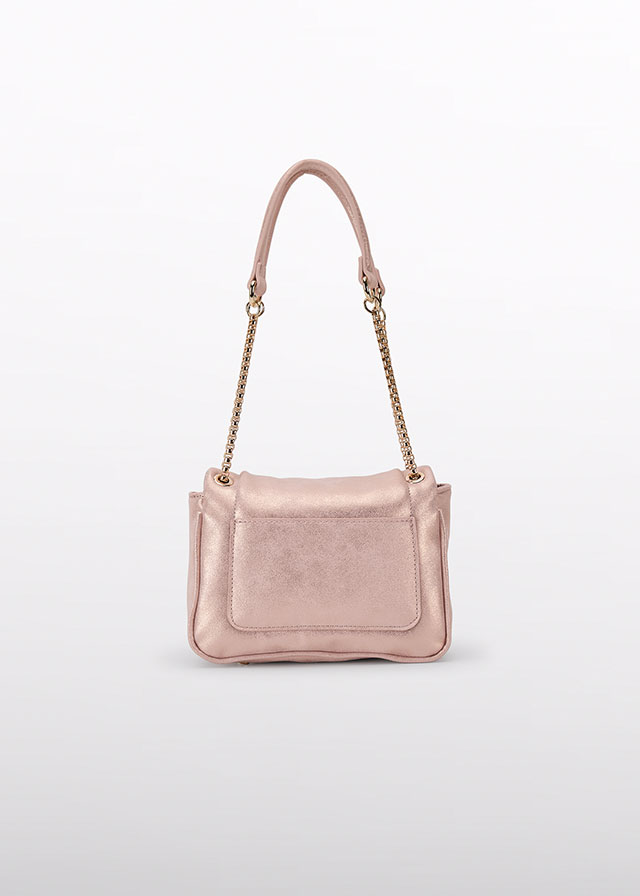 Doplňek, který upoutá pozornost. Elegantní růžová kabelka s kovovým zapínáním a zlatým řetízkem – ideální doplněk na slavnostní příležitosti, focení nebo sváteční outfit.