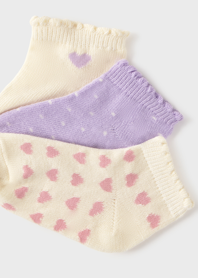 Dívčí ponožky se srdíčky (3 ks). Set tří dívčích ponožek v jemných pastelových barvách s drobnými srdíčky. Měkké a pohodlné, ideální do každodenních outfitů.
