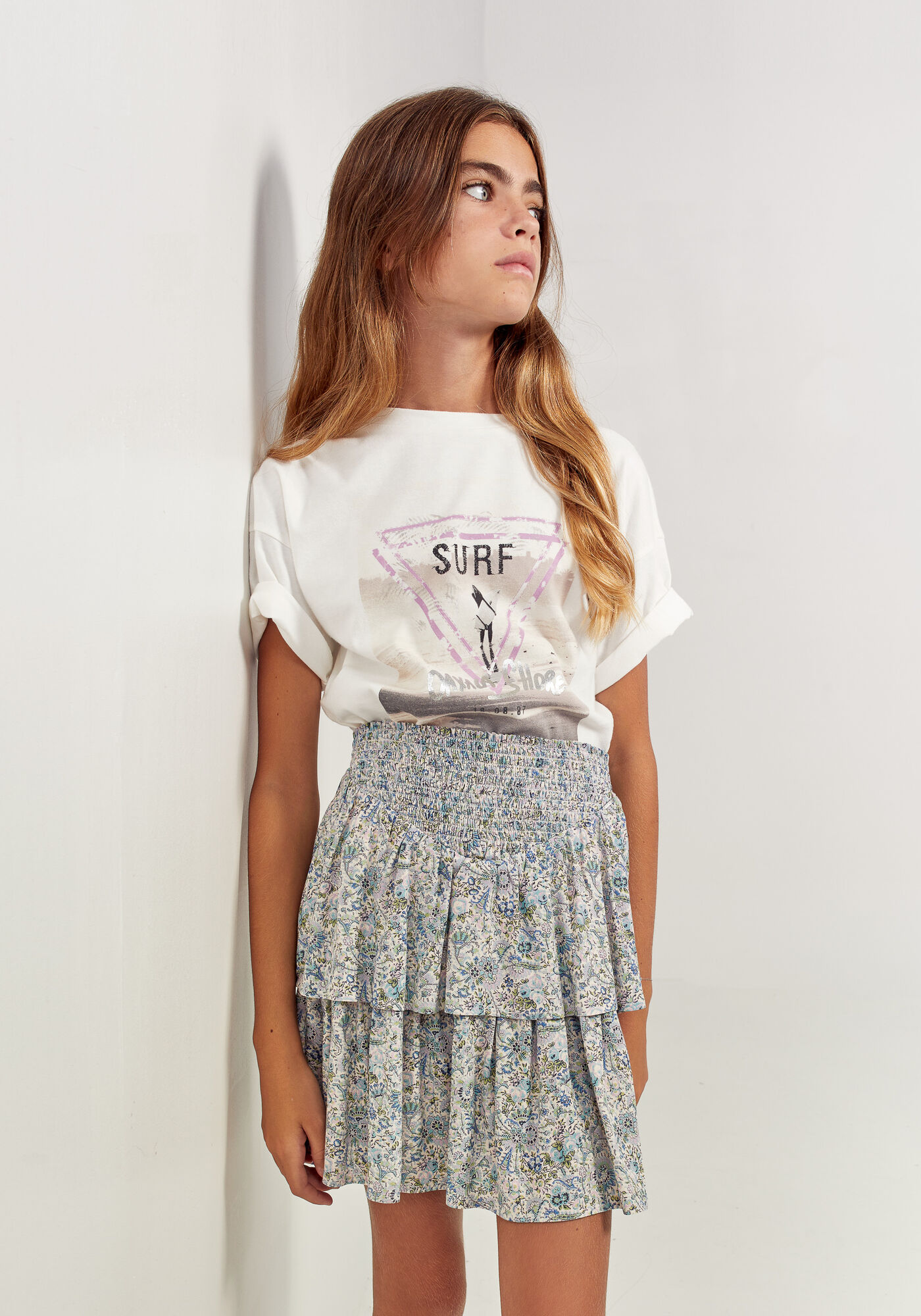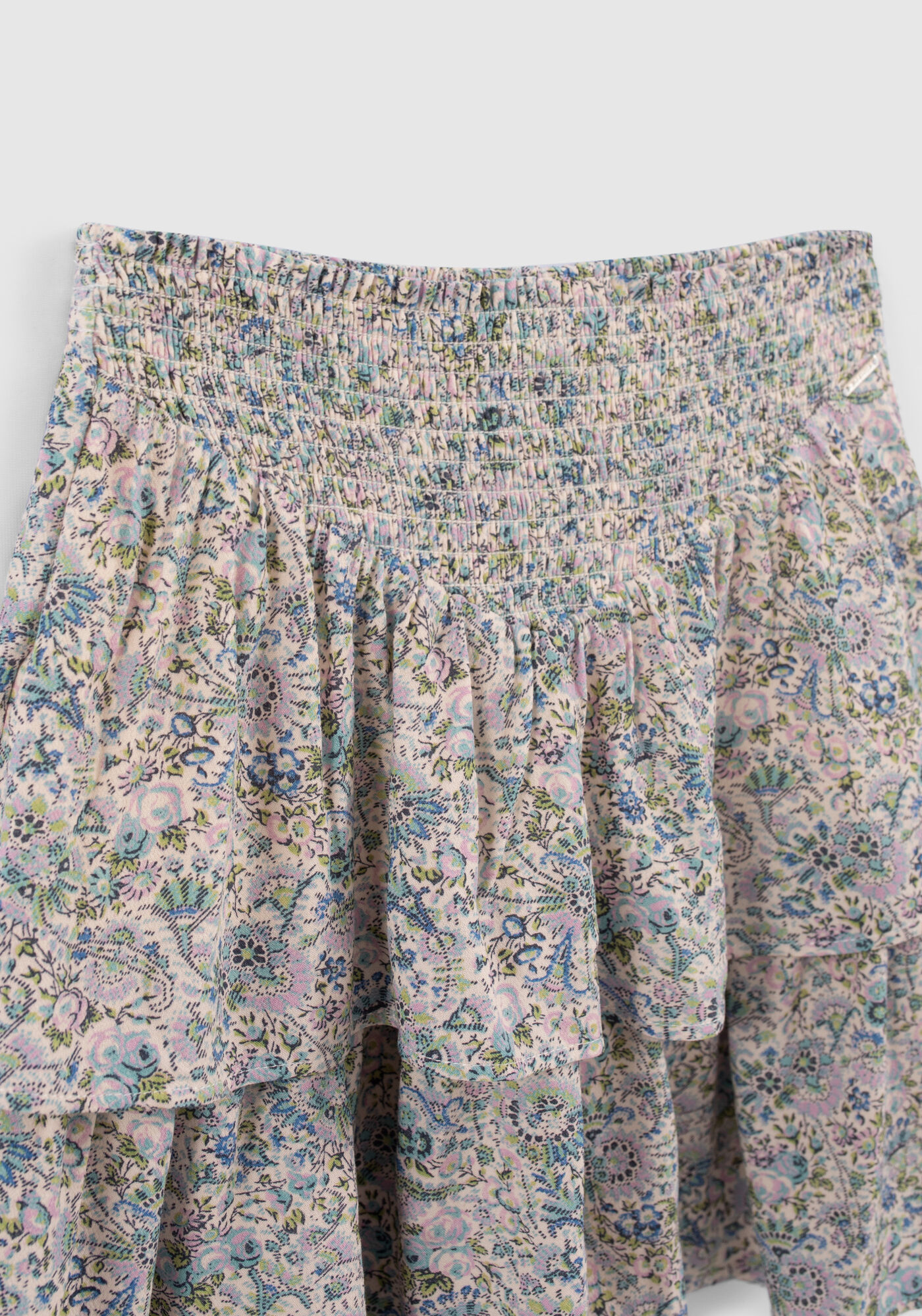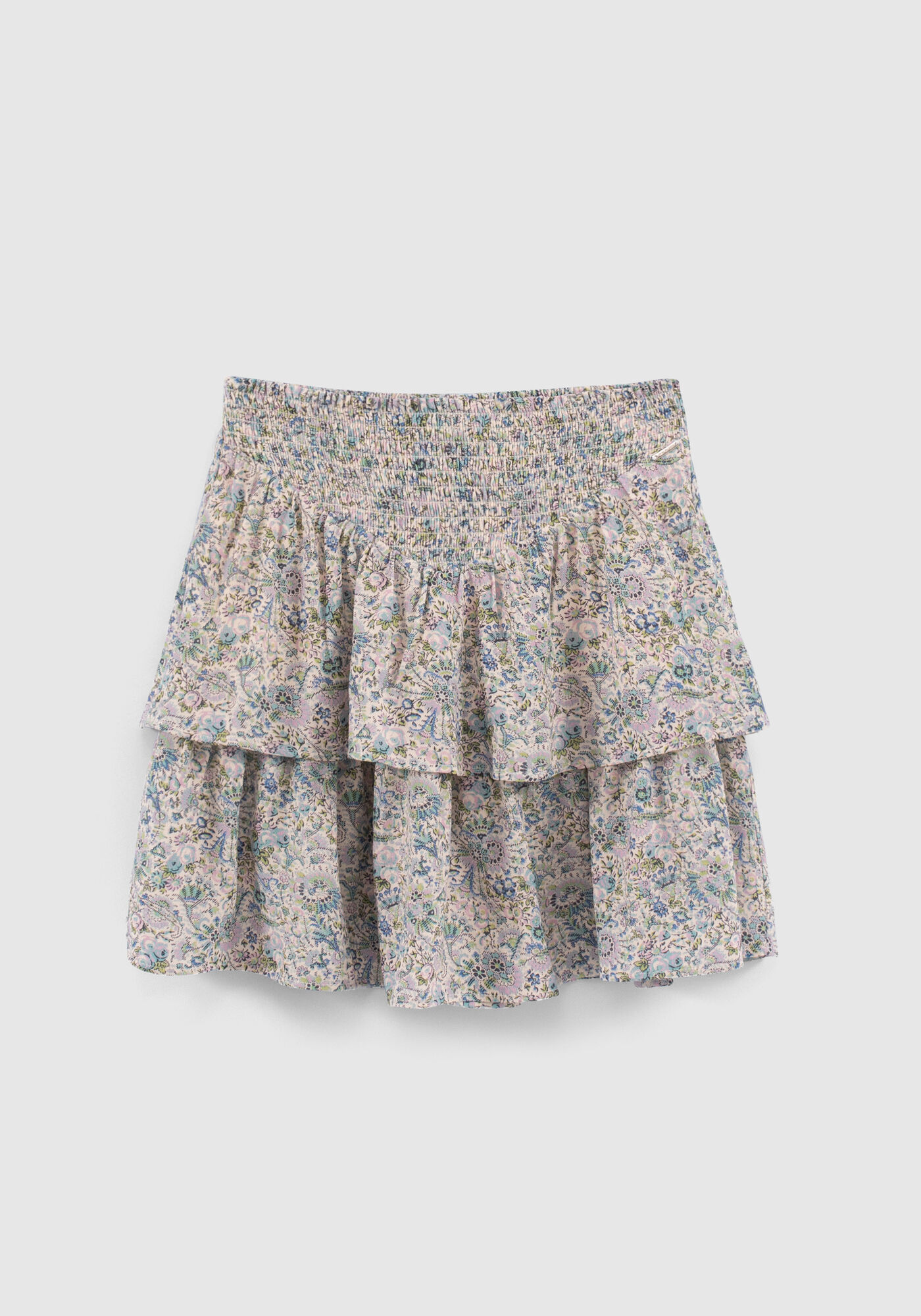 • detail Dívčí sukně LENZING™ ECOVERO™ s fialovým květinovým potiskem IKKS
