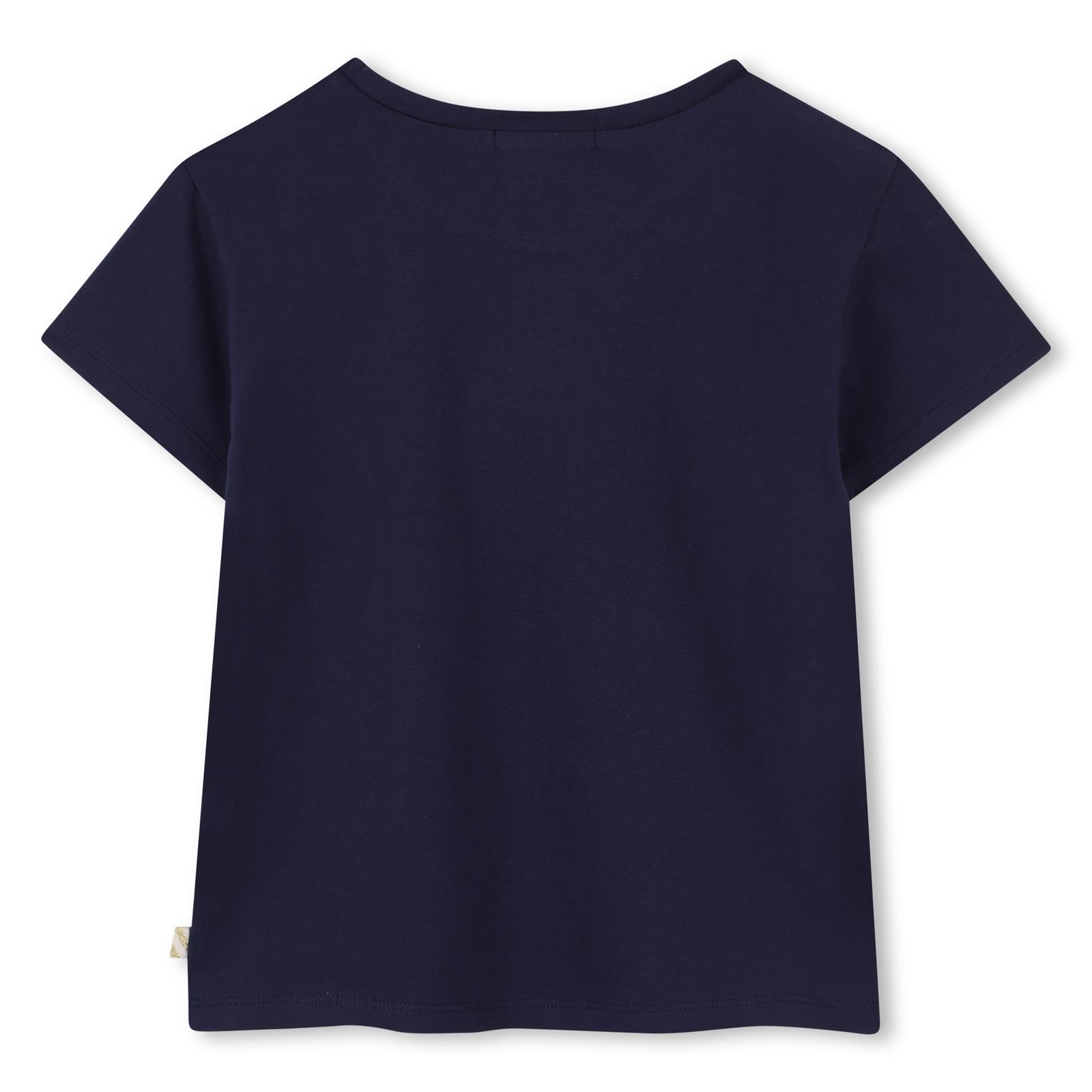 Dívčí tričko Billieblush z bavlněného úpletu s lesklým potiskem. Stylové dívčí tričko Billieblush z jemného 100% bavlněného žerzeje. Má krátké rukávy, kulatý výstřih a na přední straně je zdobeno originálním lesklým potiskem s hravým motivem. Pohodlný střih „comfort fit“ zajišťuje volnost pohybu a příjemné nošení po celý den. Nechybí ikonický štítek značky Billieblush.